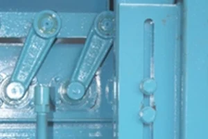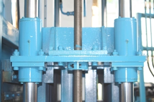 Na horní formě jsou stromové válce . Prostřední zajišťuje zrychlení zvedání a další dva na obou stranách zajišťují přítlak horní formy.